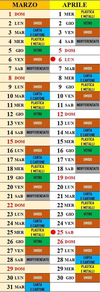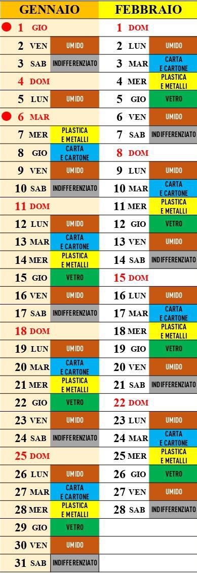 Calendario Raccolta Differenziata